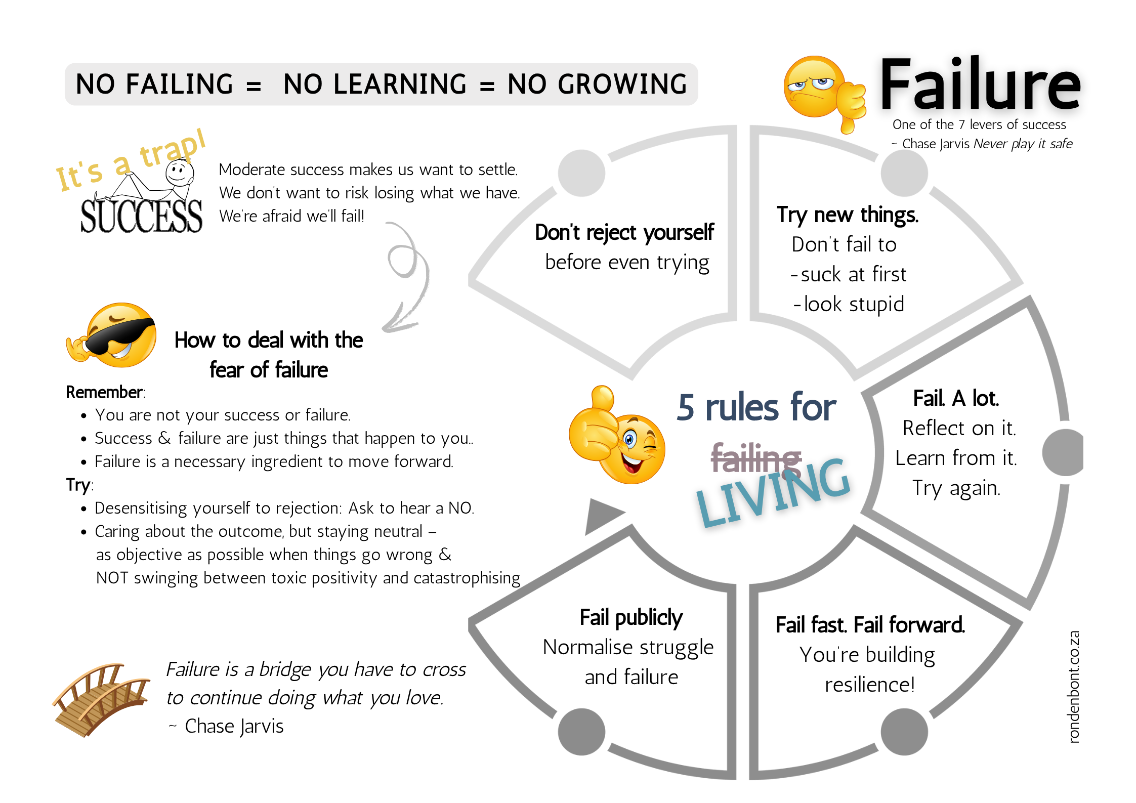 Moving on to lever number six of the seven mentioned in Never play it safe by Chase Jarvis: Failure. The other levers are attention, time, intuition, constraints, play and practise. ...