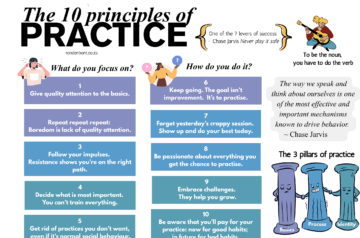The seventh lever to success as mentioned by Chase Jarvis in his book Never play it safe. This infographic summarises the 10 principles of practice according to his three pillars of practice: the fundamentals, the process and the identity. He says: The more you identify and behave as if you already are your future...